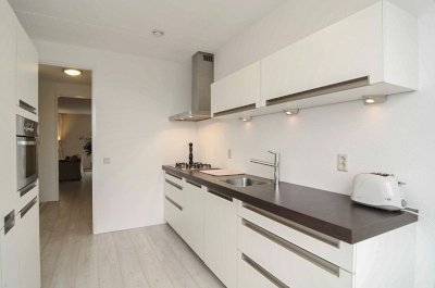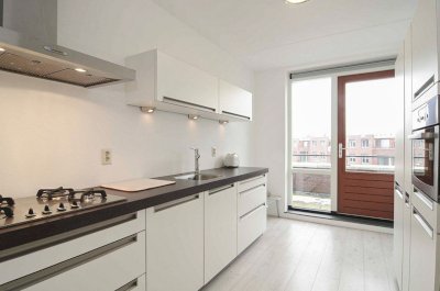 In a wonderful and quiet location we offer this well maintained house for rent. The house is spread over two floors with the entrance on the ground floor. On the first floor there are two bedrooms and the bathroom and on the second floor the living room, kitchen and the master bedroom. At the front of the house there is a beautiful view over the Oude Rijn and the Billitonkade.