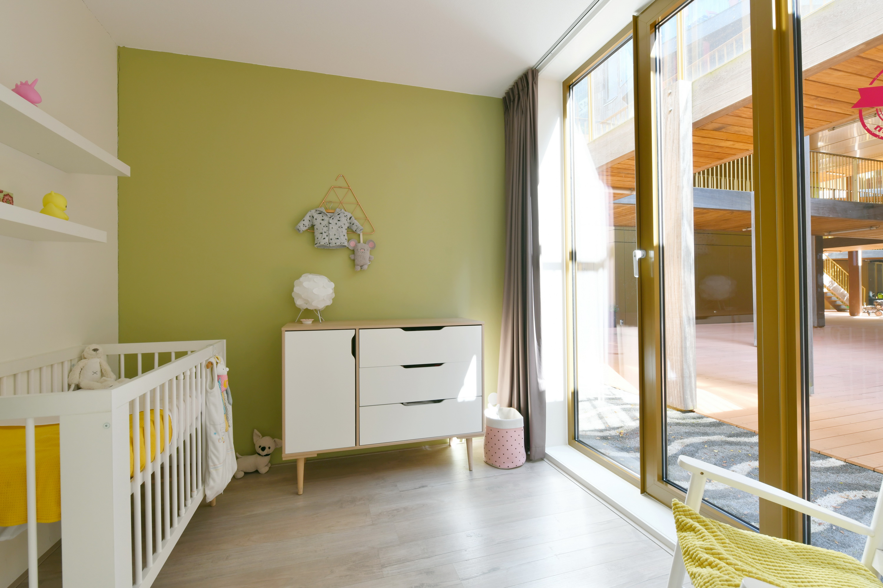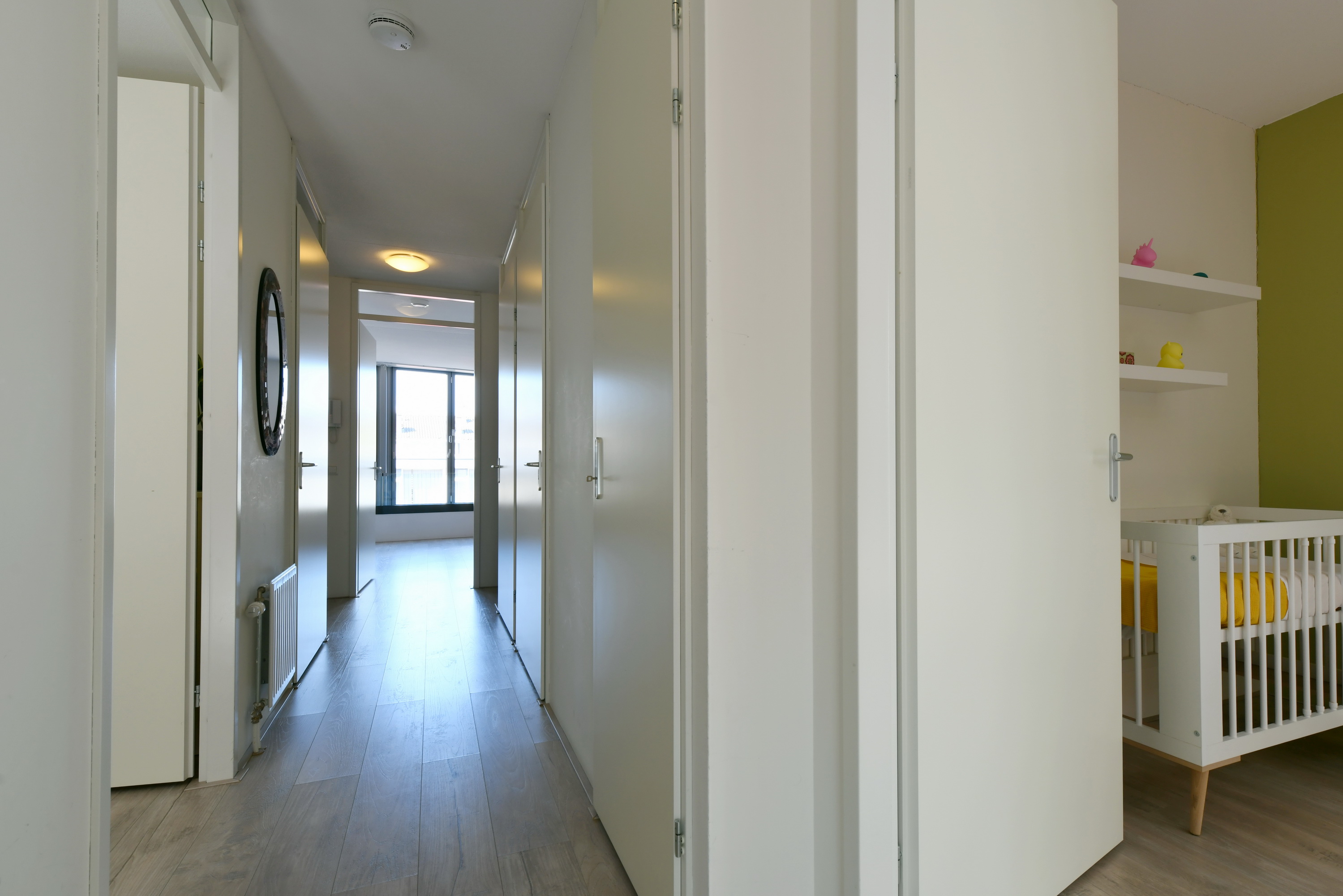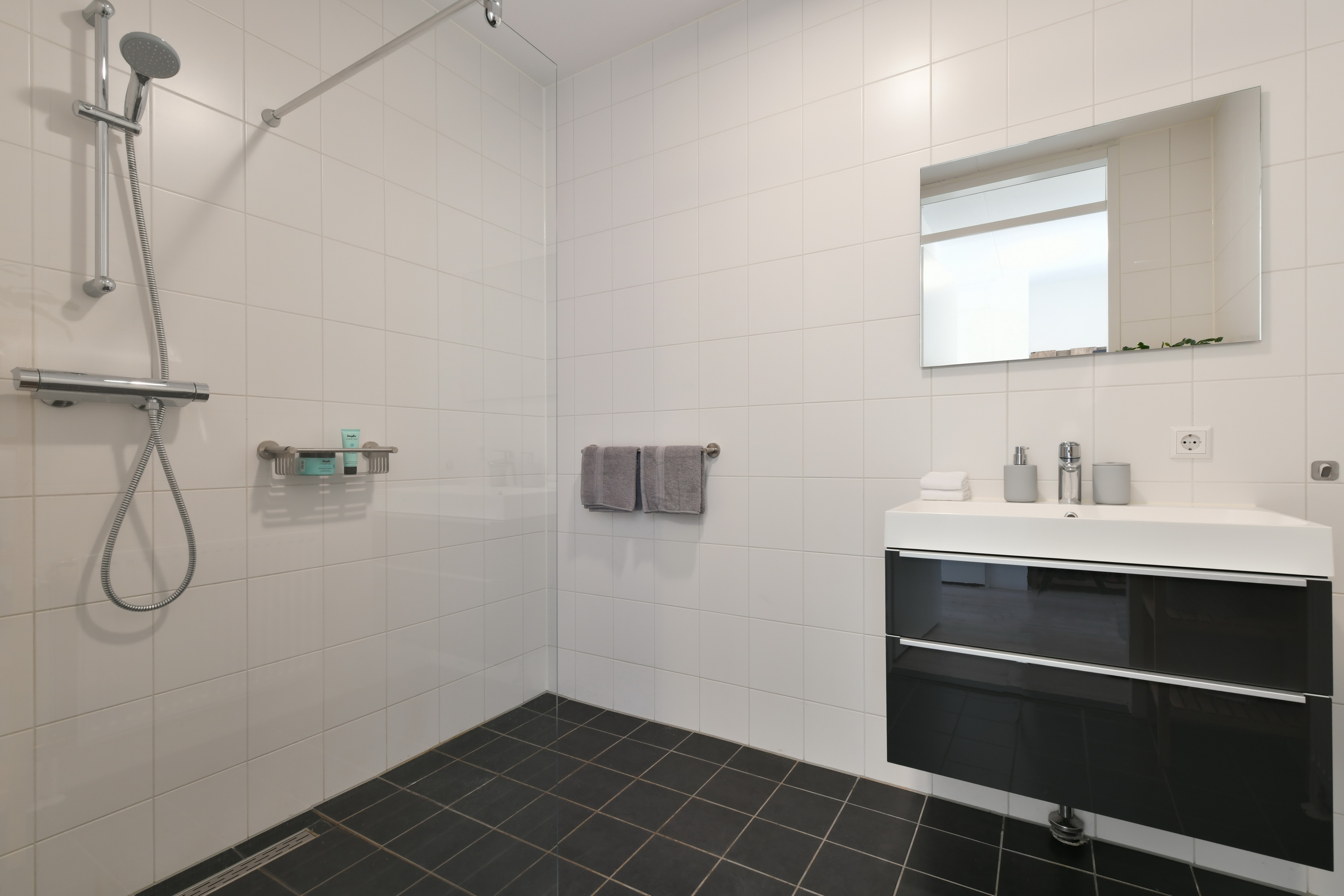 The apartment complex has a modern, sturdy appearance due to its distinctive architecture, while the interior offers plenty of tranquillity. On the fifth floor, you’ll find a stylish rooftop terrace with panoramic views, designed (just like the courtyard garden) by architect Bart Hoes. It’s a wonderful spot to relax during summer. For your daily groceries, you hardly have to leave the building: there is an AH supermarket next door that’s open until 22:00 and accessible directly via the building’s lift.