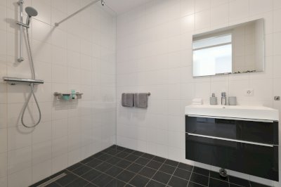 At the outside of the complex you’ll find the mailboxes and the doorbell panel. The spacious hallway is equipped with two lifts that provide access to the floors, the secure communal bicycle storage in the basement, and the fantastic rooftop terrace. The lifts also give access to the parking garage (spaces available for rent depending on availability).
