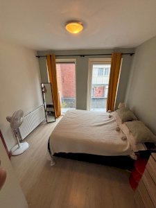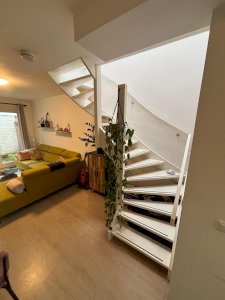 Via de open trap in de woonkamer kom je uit op de eerste verdieping, daar bevinden zich twee slaapkamer met een badkamer.