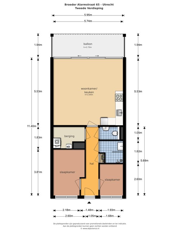 Entree met meterkast, inpandige berging met wasmachineaansluiting en CV-opstelling. Toilet met fonteintje. Nette badkamer met douche en wastafel. Twee slaapkamers, zeer lichte woon-/eetkamer met mooie grote schuifpui naar het balkon gelegen op het zuidoosten. Royale luxe open keuken v.v. inbouwapparatuur o.a. vaatwasser, keramische kookplaat, oven, combi-/magnetron, afzuigkap, koelkast en vriezer.