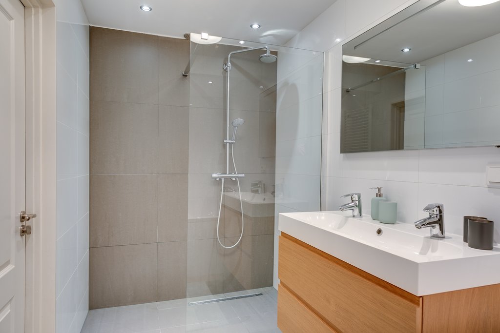 Hall with separate toilet with hand basin and access to the living room. What immediately stands out when entering the living room is the fine height of the ceilings, the large windows with a dream view of the water and all the light that comes in. The large kitchen is located at the rear of the house with adjacent terrace. The sun shines here from two o'clock in the afternoon. An ideal place to have a nice drink or enjoy dinner together. The kitchen is equipped with several built-in appliances, such as an oven, microwave, dish washer and refrigerator.