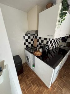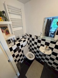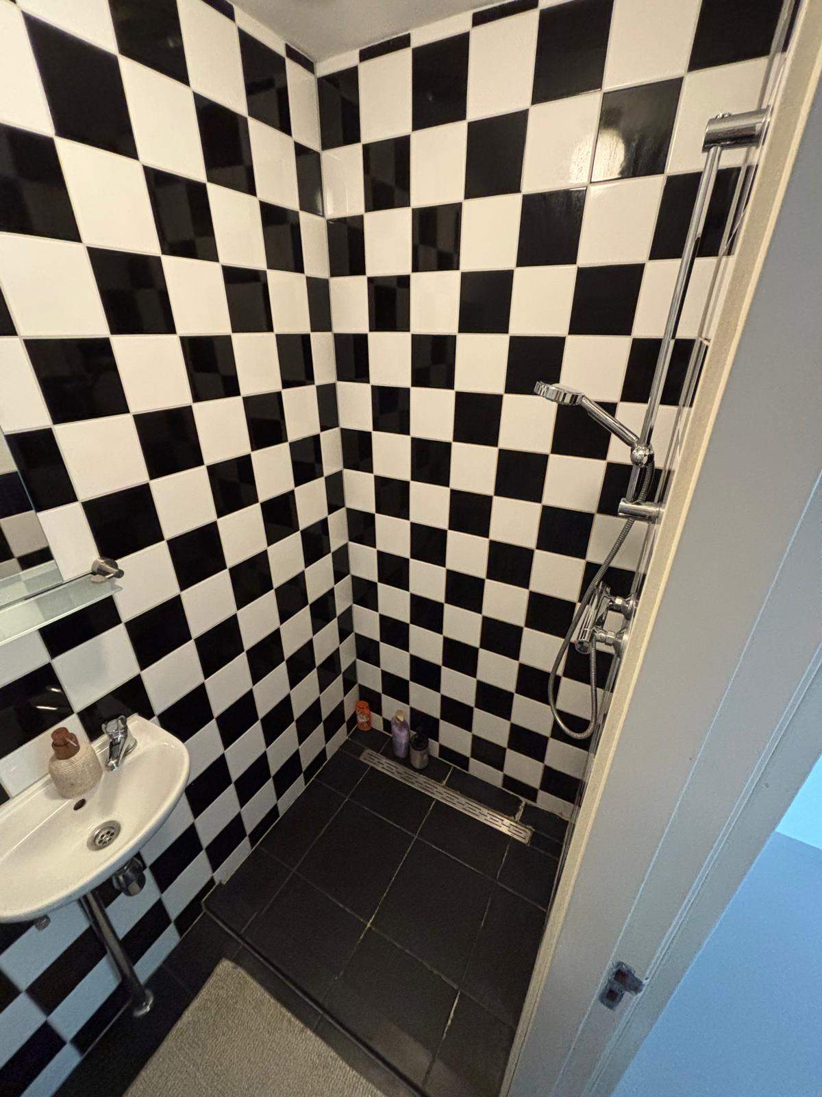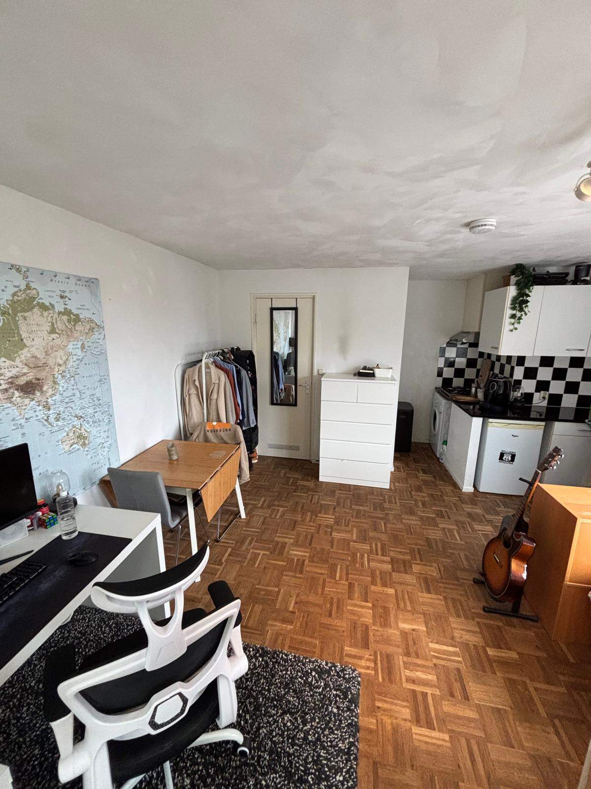 De studio heeft een oppervlakte van circa 27 m² en beschikt over een eigen douche en toilet. Dankzij de grote ramen geniet de ruimte van veel natuurlijk licht, wat zorgt voor een aangename en open sfeer. De keuken is praktisch ingericht en voorzien van een gasfornuis en afzuigkap.