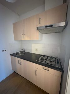 De kamer beschikt over een eigen keukenblok met gasfornuis en koelkast inclusief vriesvakje. Het toilet en badkamer is gedeeld met huisgenoten.