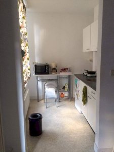 Mooie, grote en lichte kamer op de eerste verdieping aan de voorkant met een apart keukengedeelte met privé keukenblok met elektrisch kookplaatje met 2 pitjes.