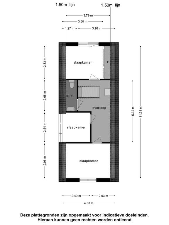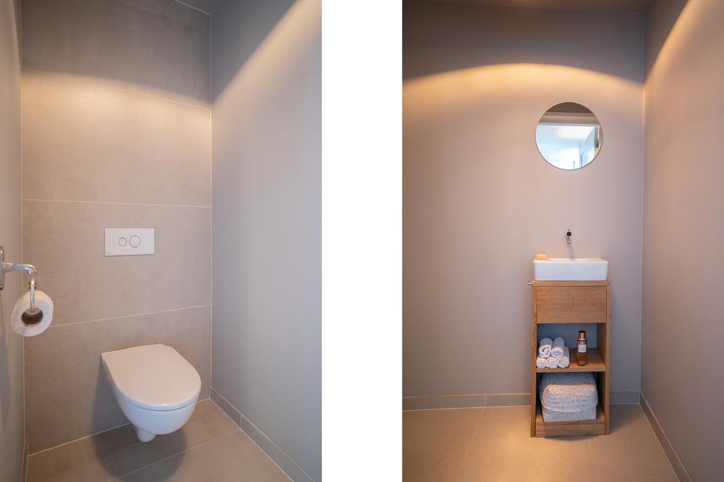 Overloop, ruim zwevend toilet met fonteintje, kleine studeerkamer aan de zijkant, ruime slaapkamer aan de voor-en achterzijde.