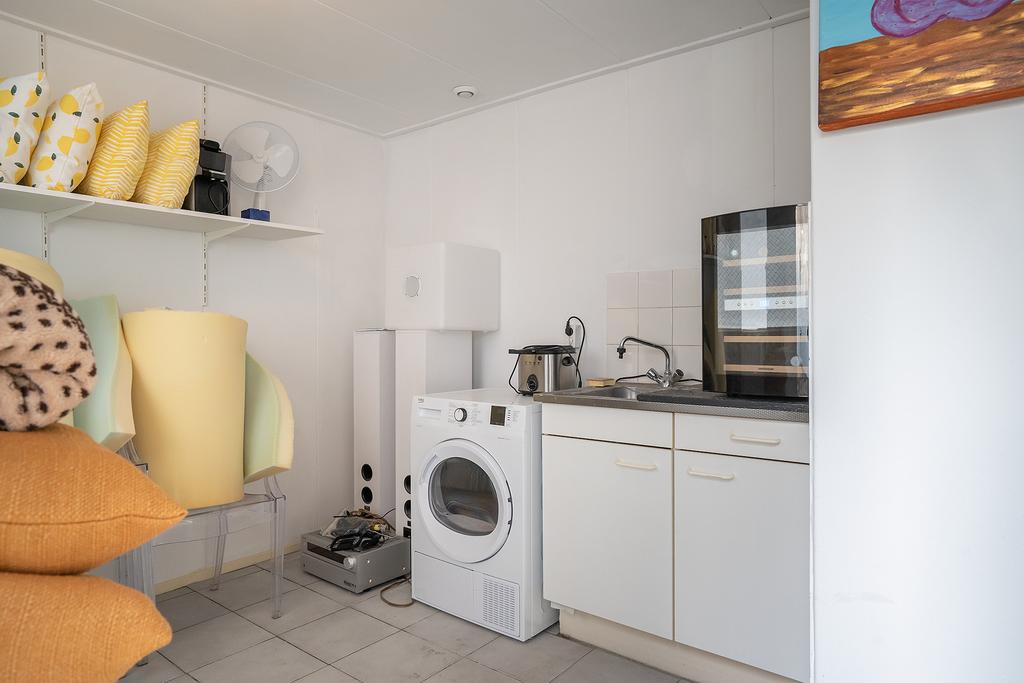 Er is een separate, verwarmde berging aanwezig naast de woning met een pantry en een wasmachine en droger.