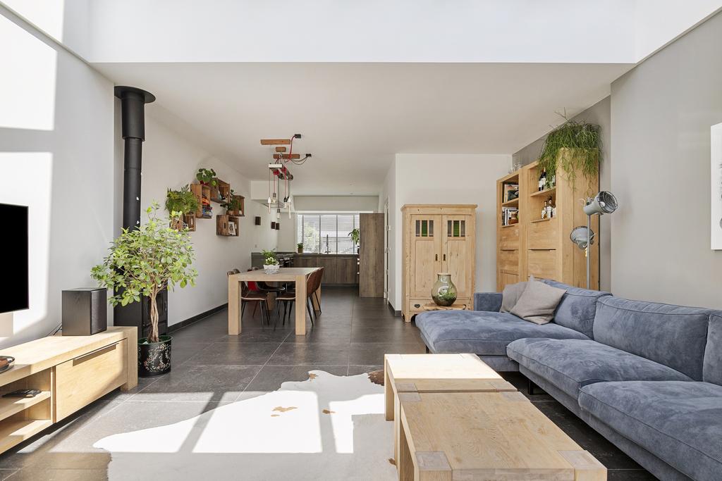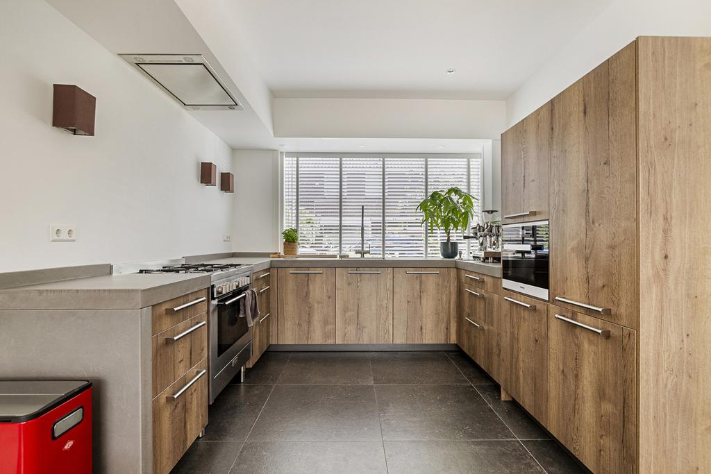 Front garden, entrance, wide hall with meter cupboard in stairs cupboard, spacious separate toilet with hand basin. Spacious, modern kitchen equipped with various built-in appliances, flowing into the bright living room with sliding doors to the spacious west-facing back garden.