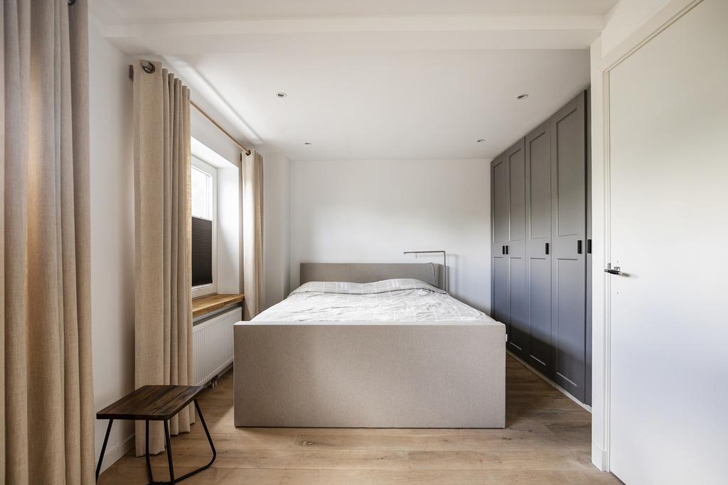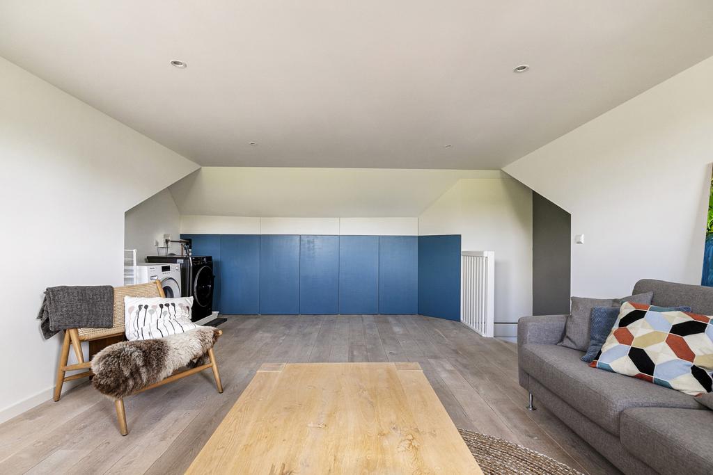 Overloop, slaapkamer voorzien van dakkapel aan de achterzijde en wasmachine.