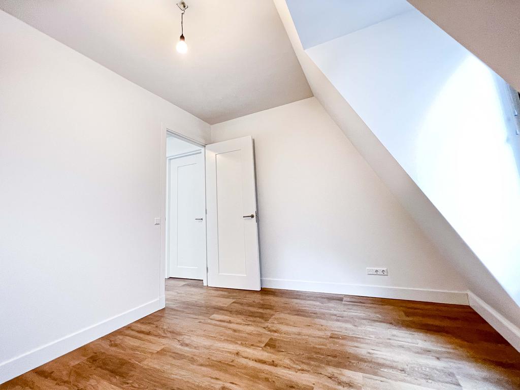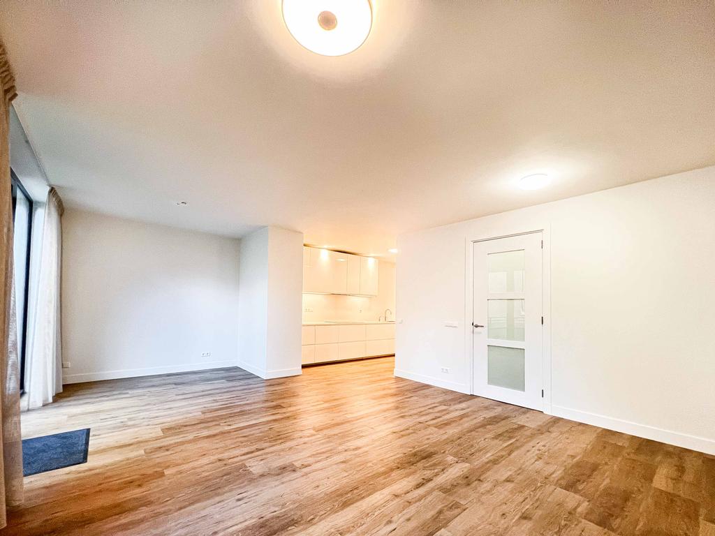 Overloop met een meterkast, ruime inbouwkast en een toilet met fonteintje. De woonkamer is een U-vorm. De voor en achterkamer zijn erg ruim. Aan de voorzijde zijn veel ramen en aan de achterzijde heb je toegang tot het grote dakterras, welke is gelegen op het noorden. In het midden is een ruime open keuken welke voorzien is van inbouw apparatuur zoals een ijskast en vriezer, inductiekookplaat, afzuigkap, oven en vaatwasser.