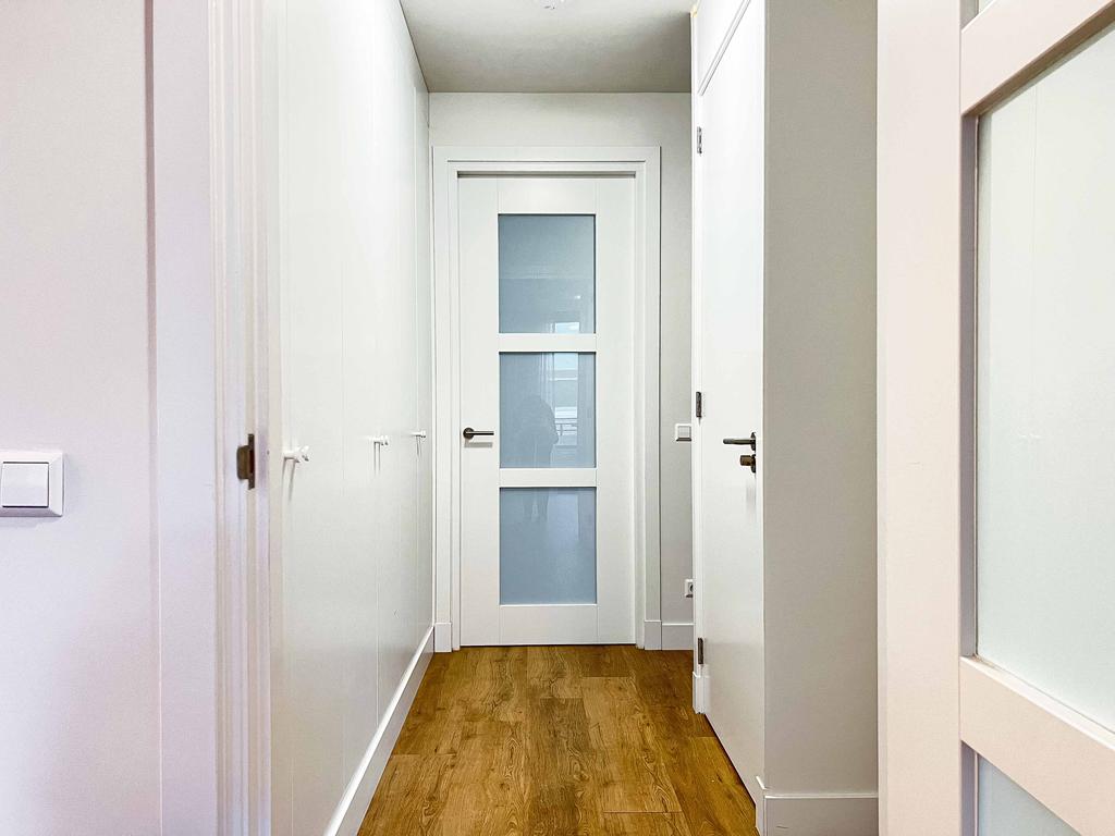 Landing with access to all three bedrooms. There is a bathroom with a second toilet, double sink, and a spacious walk-in shower. A laundry room is also located on this floor.