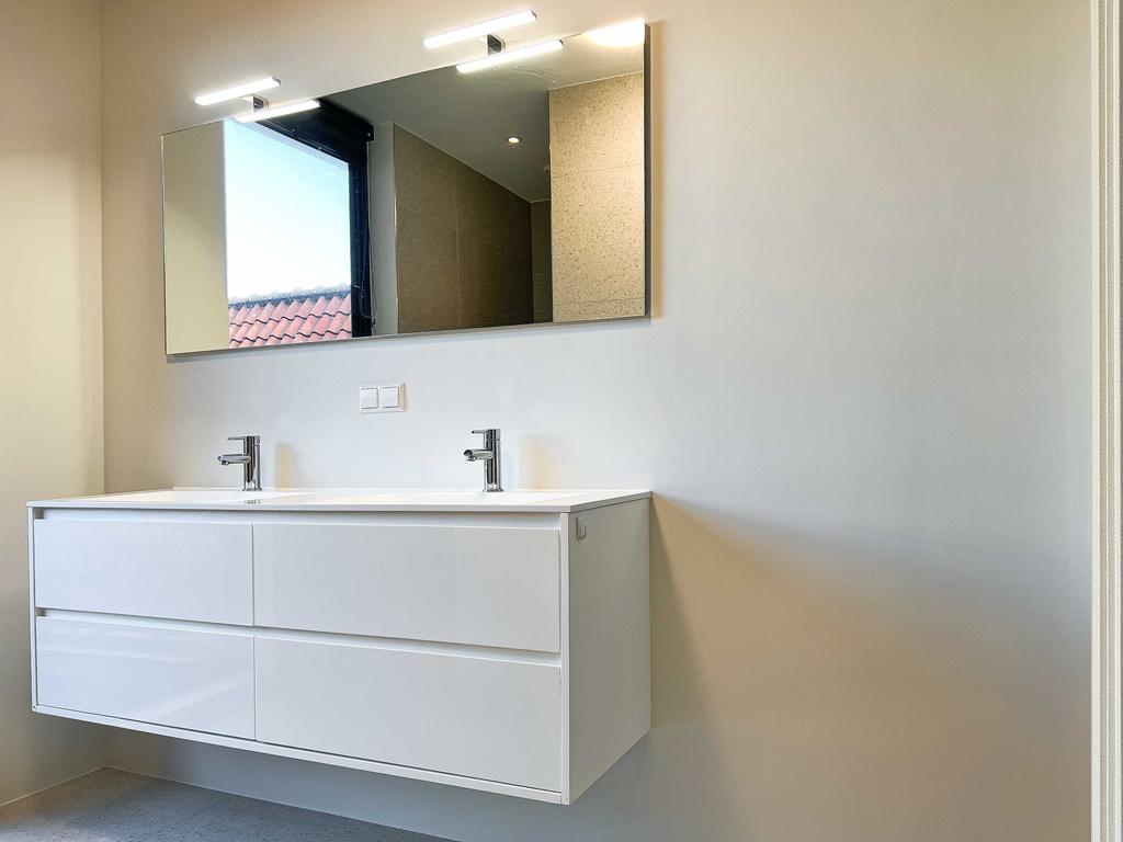 Overloop met toegang tot alle drie de slaapkamers. Er is een badkamer met het tweede toilet, dubbele wastafel en een ruime inloop douche. Op deze verdieping is ook een wasruimte.
