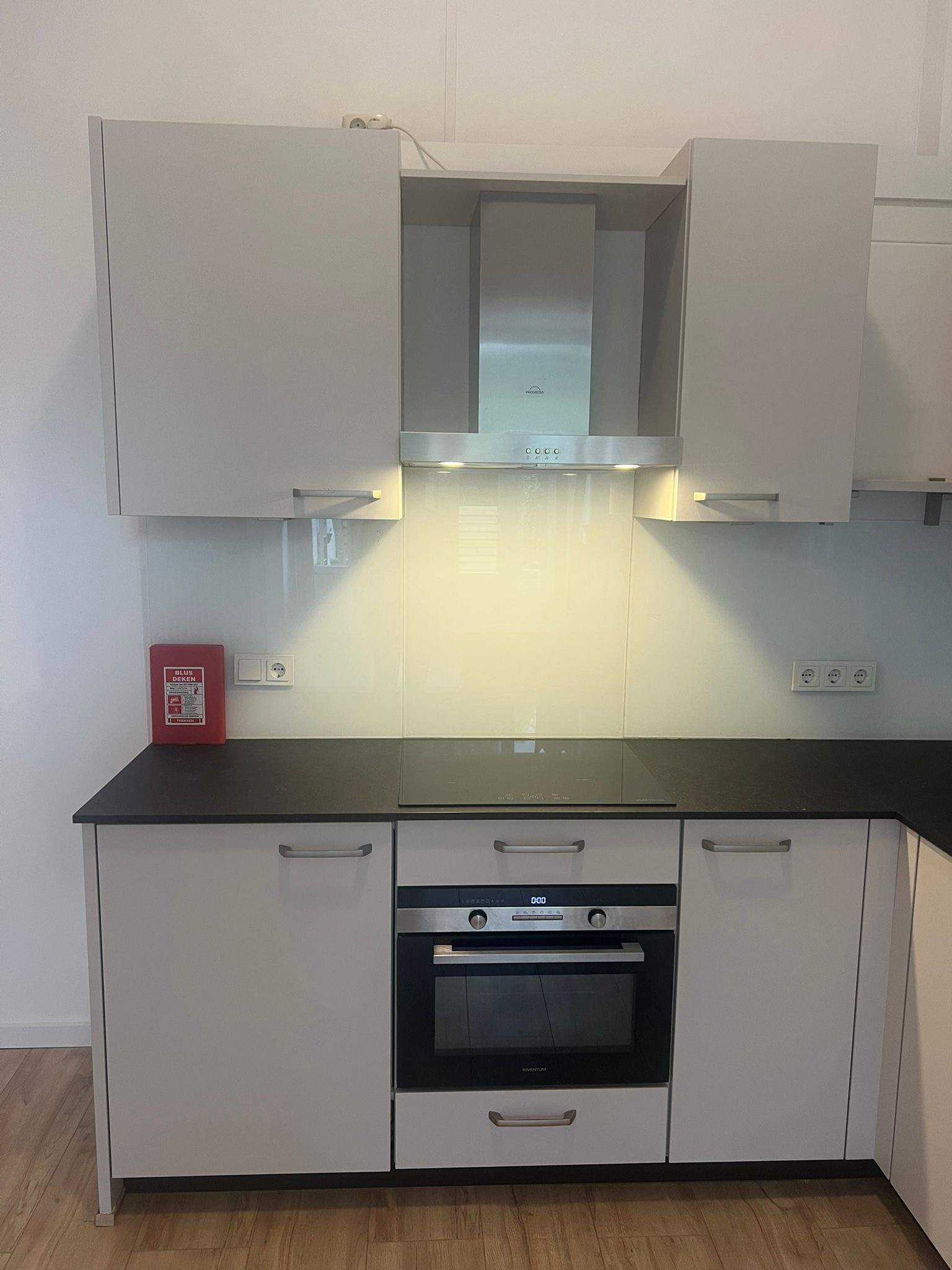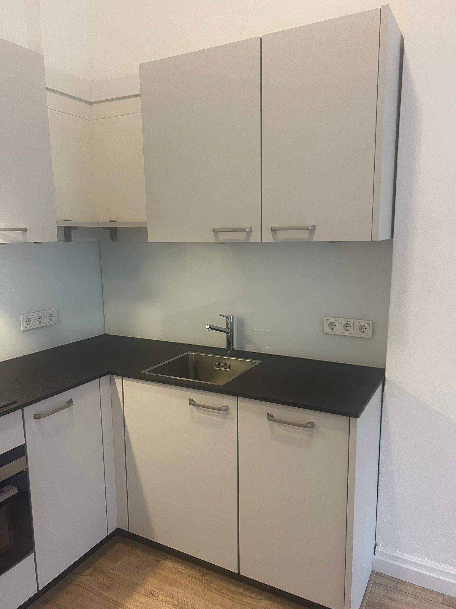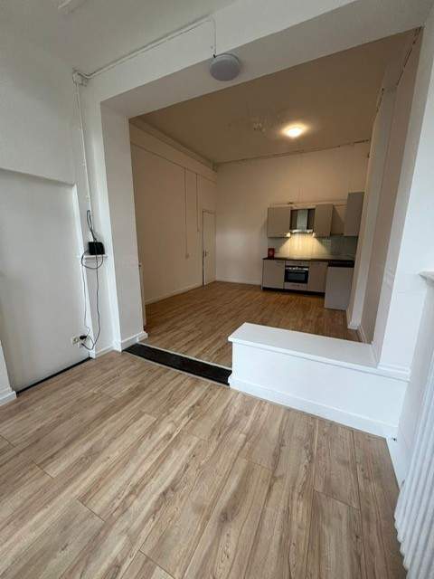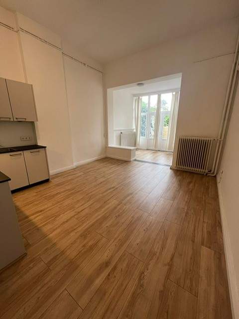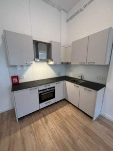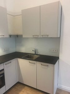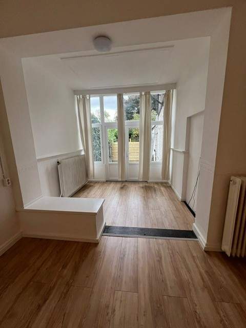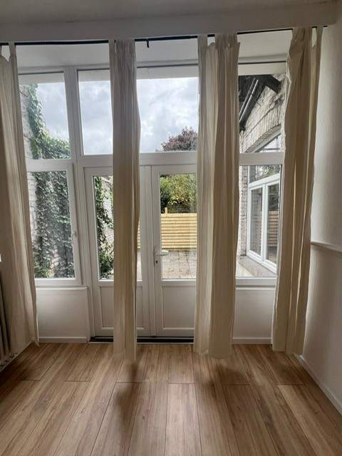 Gerenoveerde, zeer ruime kamer van bijna 30m2 in een studentenhuis met EIGEN keuken in hoekopstelling voorzien van inbouwapparatuur zoals afzuigkap, inductiekookplaat, koelkast, vaatwasser en combi-oven/magnetron.